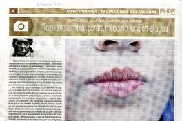 "Te siento temblar contra mí como luna en el agua". [artículo] El Pingüino (Diario : Punta Arenas, Chile)-- abr. 13, 2013, p. 4 (suplemento "Fin de semana") .