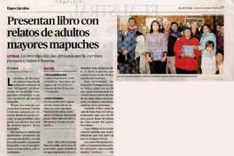 Presentan libro con relatos de adultos mayores mapuches. [artículo] El Austral (Diario : Osorno, Chile)-- mayo 13, 2013, p. 27. .