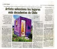 Artista selecciona los lugares más decadentes de Chile [artículo] / Rodrigo Castillo Las Últimas Noticias (Diario : Santiago, Chile) jul. 19, 2013, p. 58 .