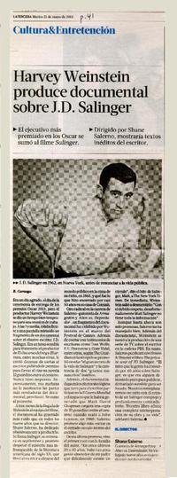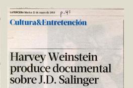 Harvey Weinstein produce documental sobre J.D. Salinger [artículo] / Roberto Careaga C. La Tercera de la Hora (Diario : Santiago, Chile)-- mayo 21, 2013, p. 41. .