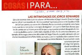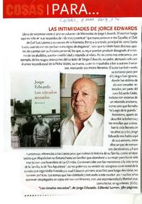 Las íntimidades de Jorge Edwards. [artículo]. Cosas (Revista : Santiago, Chile)-- mar. 8, 2013, p. 40. .