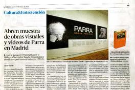 Abren muestra de obras visuales y videos de Parra en Madrid [artículo] Javier García.