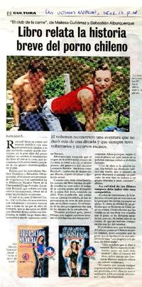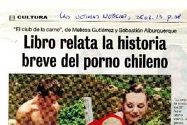 Libro relata la historia breve del porno chileno [artículo] / Jazmín Lolas E. Las Últimas Noticias (Diario : Santiago, Chile)-- ago. 25, 2013, p. 38 .
