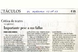 "Cuarteto": Importante pese a sus fallas [artículo] / Pedro Labra Herrera El Mercurio (Diario : Santiago, Chile)-- jul. 12, 2013, p. C21 .