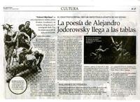 La poesía de Alejandro Jodorowsky llega a las tablas [artículo] / Daniela Silva Astorga El Mercurio (Diario : Santiago, Chile)-- jul. 14, 2013, p. A17 .