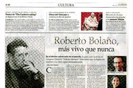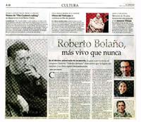 Roberto Bolaño, más vivo que nunca [artículo] / Camila Ortiz Miranda El Mercurio (Diario : Santiago, Chile)-- jul. 16, 2013, p. A10 .