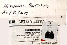 Sección Archivo de Referencias Críticas Chilenas. Huenún Villa, Jaime Luis, 2013