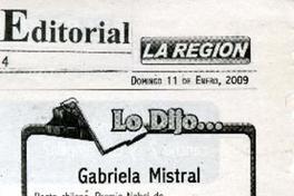 Gabriela Mistral [artículo] / Patricio Díaz Coudray. La Región (Coquimbo, Chile)-- ene. 11, 2009, p. 4. .