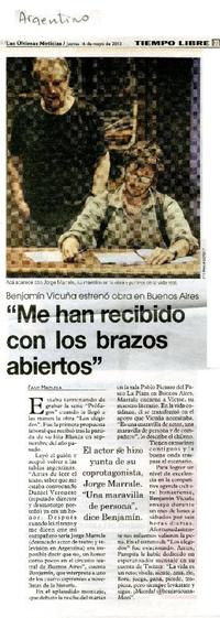"Me han recibido con los brazos abiertos" [artículo] / Fany Mazuela. Las Últimas Noticias (Diario : Santiago, Chile)-- mayo 16, 2013, p. 33. .