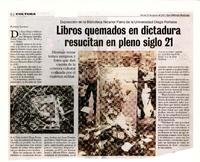Libros quemados en dictadura resucitan en pleno siglo 21 [artículo] / La Últimas Noticias (Diario : Santiago, Chile)-- ago. 27, 2013, p. 38 .