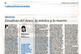 Estudioso del deseo, la mística y la muerte [artículo] / Matías Rivas La Tercera (Diario : Santiago, Chile)-- sep. 27, 2013, p. 58 .