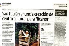 San Fabián anuncia creación de Centro Cultural para Nicanor [artículo] Carolina Marcos Ch.