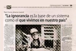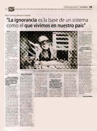 "La ignorancia es la base de un sistema como el que vivimos en nuestro país" [artículo] / Macarena Muñoz El Centro (Diario : Talca, Chile)-- ago. 26, 2013, p. 23 .