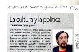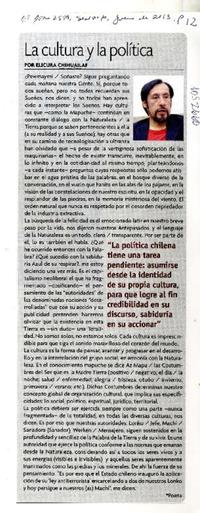 La cultura y la política [artículo] / Elicura Chihuailaf El Periodista (Diario : Santiago, Chile)-- jul. 2013, p. 12 .