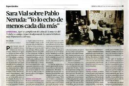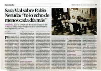 Sara Vial sobre Pablo Neruda: "yo lo echo de menos cada día más" [artículo] / Flor Arbulú. Crónica (Diario : Chillán, Chile)-- sept. 24, 2013, p. 23. .