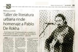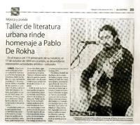 Taller de literatura urbana rinde homenaje a Pablo de Rokha. [artículo] El Centro (Diario : Talca, Chile)-- oct. 19, 2013, p. 25. .