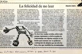 La felicidad de no leer [artículo] / Alejandro Zambra. Las Últimas Noticias (Diario : Santiago, Chile)-- abr. 6, 2005, p. 35. .