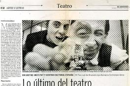 Lo último del teatro europeo en Santiago [artículo] / Macarena García. El Mercurio (Diario : Santiago, Chile)-- ago. 29, 2004, p. E12-E13. .