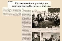 Escritora nacional participa de nuevo proyecto literario en Mulchén. [artículo] La Tribuna (Diario : Los Ángeles, Chile)-- nov. 26, 2009, p. 4. .