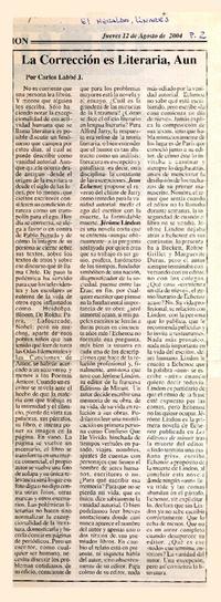 La corrección es literaria, aun [artículo] / Carlos Labbé J. El Heraldo (Diario : Linares, Chile)-- ago. 12, 2004, p. 2. .