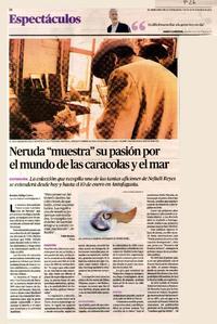 Neruda "muetra" su pasión por el mundo de las caracolas y el mar [artículo] / Romina Zúñiga Castro. El Mercurio (Diario : Antofagasta, Chile)-- dic. 18, 2012, p. 26. .