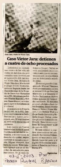 Caso Víctor Jara: detienen a cuatro de ocho procesados. [artículo] Prensa Austral (Diario : Punta Arenas, Chile)-- ene. 3, 2013, p. 35. .