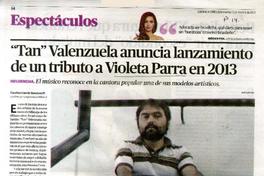 "Tan" Valenzuela anuncia lanzamiento de un tributo a Violeta Parra en 2013 [artículo] Catalina Garcés Rondanelli.