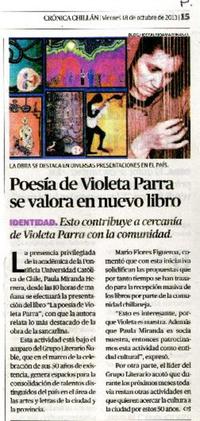Poesía de Violeta Parra se valora en nuevo libro [artículo] / Crónica (Diario : Chillán, Chile)-- oct. 18, 2013, p. 15 .