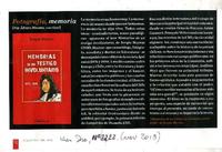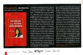 Fotografía, memoria [artículo] / Alvaro Bisama Qué Pasa (Revista : Santiago, Chile)-- n°2222 (nov. 2013), p. 102 .