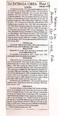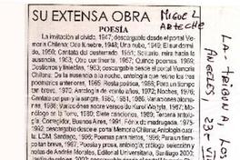 Su extensa obra. [artículo] La Tribuna (Diario : Los Angeles, Chile)-- jul. 23, 2012, p. 22. .