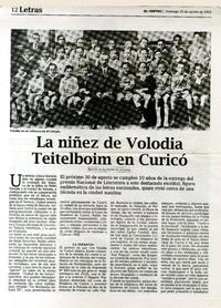 La niñez de Volodia Teitelboim en Curicó [artículo] / Rodolfo de los Reyes Recabarren. El Centro (Diario : Talca, Chile)-- ago. 19, 2012, p. 12-13. .