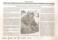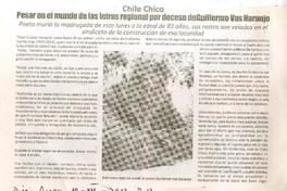 Chile Chico: pesar en el mundo de las letras regional por deceso de Guillermo Vas Naranjo. [artículo] Diario de Aysén (Diario : Aysén, Chile)-- jul. 10, 2012, p. 13. .