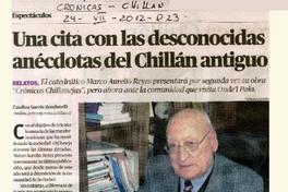 Una cita con las desconocidas anécdotas del Chillán antiguo [artículo] / Catalina Garcés Rondanelli. Crónica de Chillán (Diario : Chillán, Chile)-- jul. 24, 2012, p. 23. .