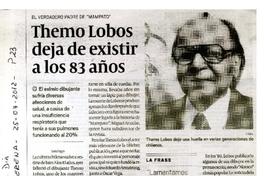 Thema Lobos deja de existir a los 83 años. [artículo] El Día (Diario : La Serena, Chile)-- jul. 25, 2012, p. 23. .