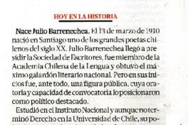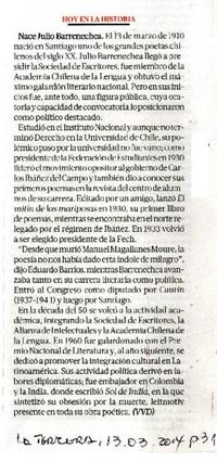 Nace Julio Barrenechea [artículo] / VVD La Tercera (Diario : Santiago, Chile)-- mar. 13 2014, p. 31 .