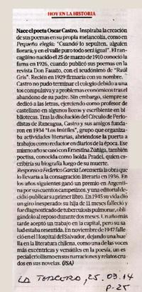 Nace el poeta Oscar Castro [artículo]