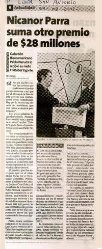 Nicanor Parra suma otro premio de $28 millones. [artículo]