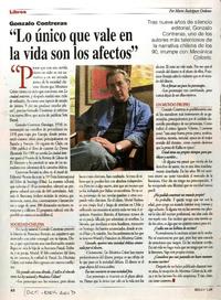 "Lo único que vale en la vida son los afectos" [entrevista] / [artículo] : Por Mario Rodríguez Ordenes. Ercilla (Revista : Santiago, Chile)-- no 3488 (Octubre-Noviembre 2013), p. 62. 1 página : ilustración en color ; 38 cm. .