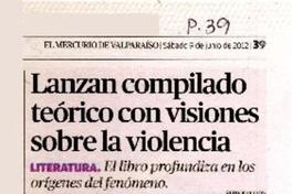 Lanzan compilado teórico con visiones sobre la violencia. [artículo] El Mercurio de Valparaíso (Diario : Valparaíso, Chile)-- jun. 9, 2012, p. 39. .