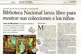 Biblioteca Nacional lanza libro para mostrar sus colecciones a los niños [artículo] / Constanza Rojas V. El Mercurio (Diario : Santiago, Chile)-- ago. 27, 2013, p. A14 .