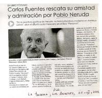 Carlos Fuentes rescata su amistad y admiración por Pablo Neruda. [artículo] La Tribuna (Diario : Los Ángeles, Chile)-- jul. 5, 2012, p. 22. .