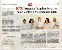 ICTUS presenta "Alguien tiene que parar", sobre la violencia cotidiana [artículo] / Juan Carlos Ramírez F. La Segunda (Diario : Santiago, Chile)-- nov. 16, 2012, p. 69 .
