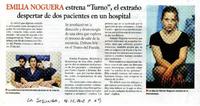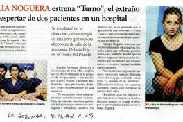 Emilia Noguera estrena "Turno", el extraño despertar de dos pacientes en un hospital [artículo] / La Segunda (Diario : Santiago, Chile)-- nov. 16, 2012, p. 69 .