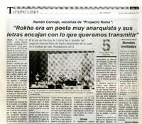 "Rokha era un poeta muy anarquista y sus letras encajan con lo que queremos transmitir" [artículo] / Verónica Vasquez El Centro (Diario : Talca, Chile)-- oct. 15, 2012, p. 31-32 .
