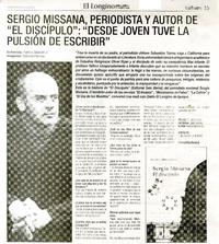 Sergio Missana, periodista y autor de "El Discípulo": "desde joven tuve la pulsión de escribir" [artículo] / Patricio Sesnich Jr. El Longino (Diario : Iquique, Chile)-- feb. 8, 2014, p. 15 .