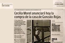 Cecilia Morel anunciará hoy la compra de la casa de Gonzalo Rojas [artículo] Carolina Marcos Ch.