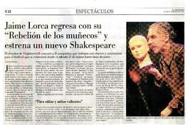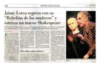 Jaime Lorca regresa con su "Rebelión de los muñecos" y estrena un nuevo Shakespeare [artículo] Eduardo Miranda