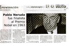 Pablo Neruda fue finalista el Premio Nobel en 1963 [artículo] / La Región (Diario : Coquimbo, Chile)-- ene. 4, 2014, p. 23 .