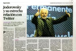 Jodorowsky y su estrecha relación con twitter. [artículo] El Mercurio de Antogafasta (Diario : Antofagasta, Chile)-- ago. 10, 2012, p. 31. .