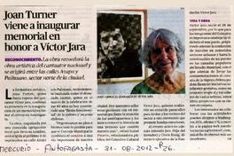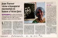 Joan Turner viene a inaugurar memorial en honor a Víctor Jara. [artículo] El Mercurio de Antogafasta (Diario : Antofagasta, Chile)-- ago. 31, 2012, p. 26. .